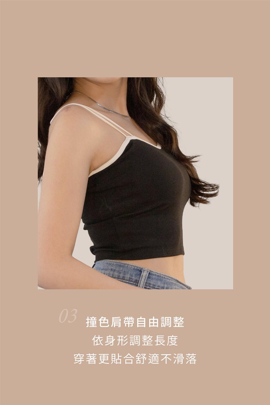 AA011901極簡撞色細肩修身BRATOP (M, 黑)