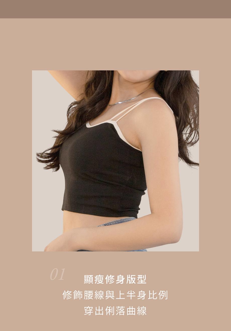 AA011901極簡撞色細肩修身BRATOP (L, 黑)