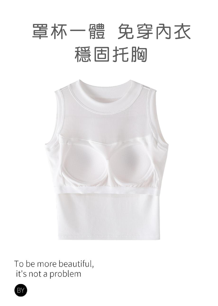 915 網紗透膚細緻天絲頂級輕奢 BRA TOP (S, 白)